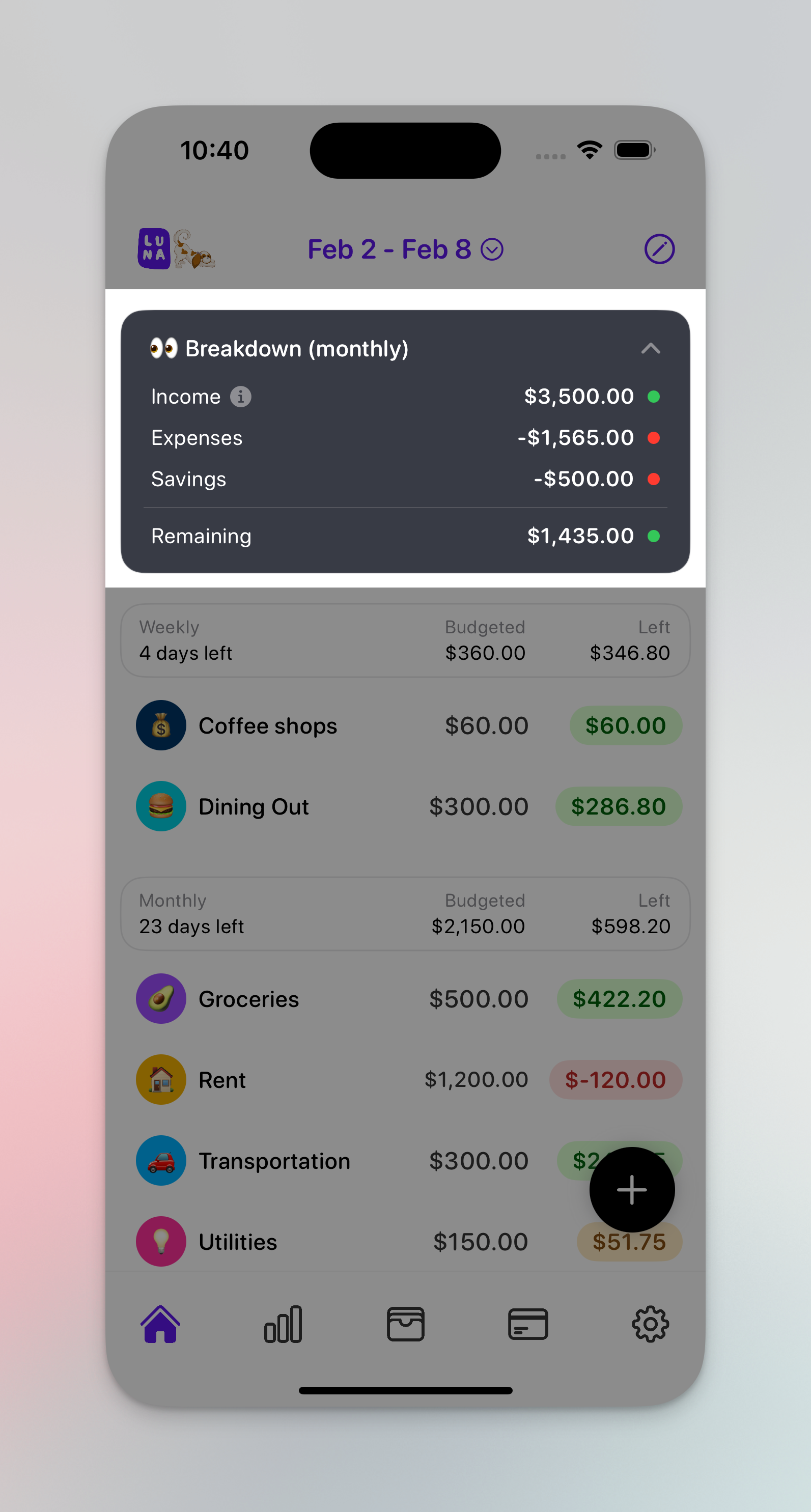 Luna was originally built to help people curb spending, and so this feature wasn't originally in the app.