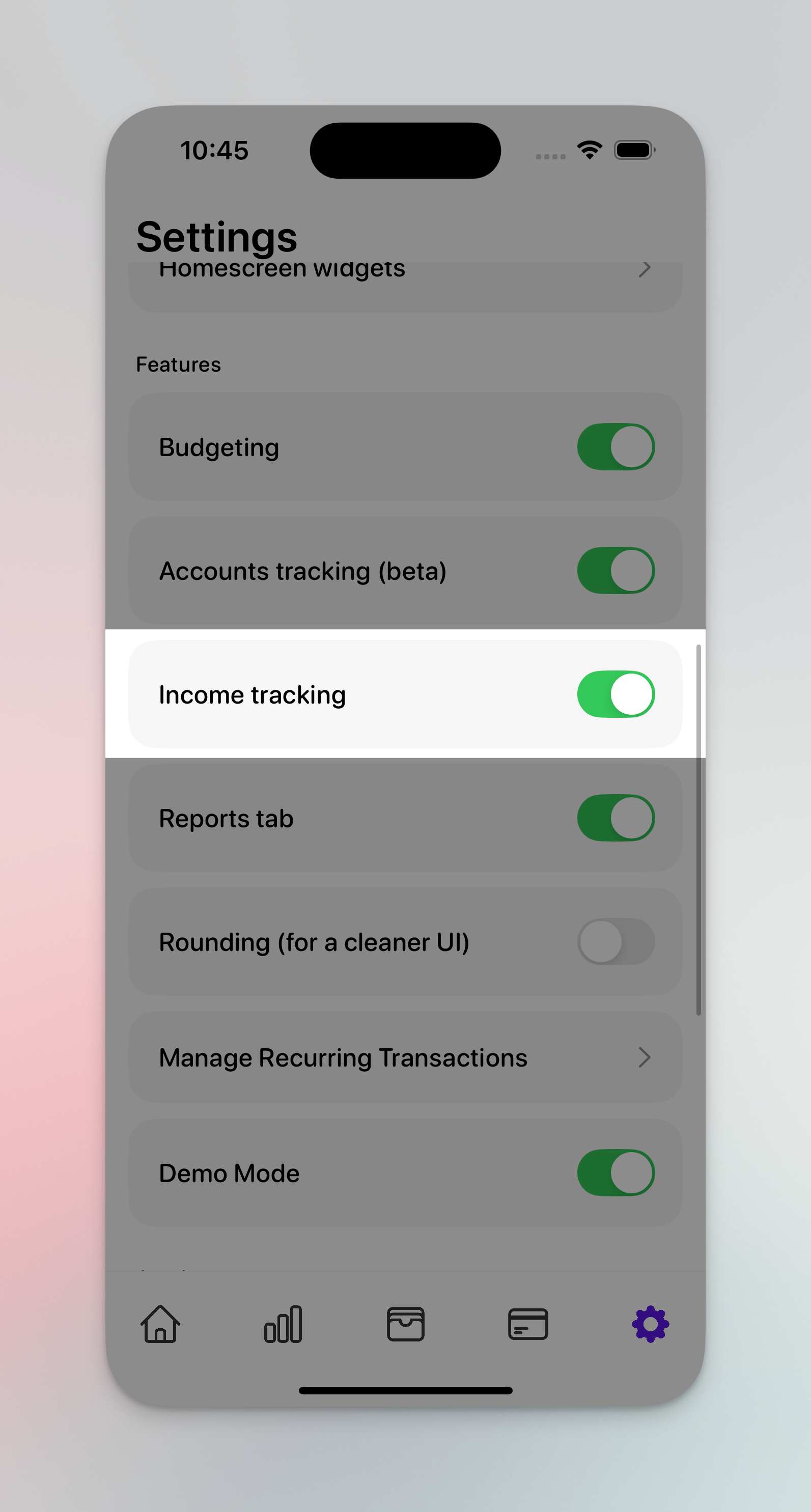 <figure><img src="https://2113371695-files.gitbook.io/~/files/v0/b/gitbook-x-prod.appspot.com/o/spaces%2F9u8NDU98Vc8QCa62wyUz%2Fuploads%2Fipe6ojLV2mP1xdRUivDZ%2Fturn_off_income.png?alt=media&#x26;token=7bcda34a-534e-4178-a2f2-0994992bae60" alt="" width="375"><figcaption><p>Turning off income tracking</p></figcaption></figure>